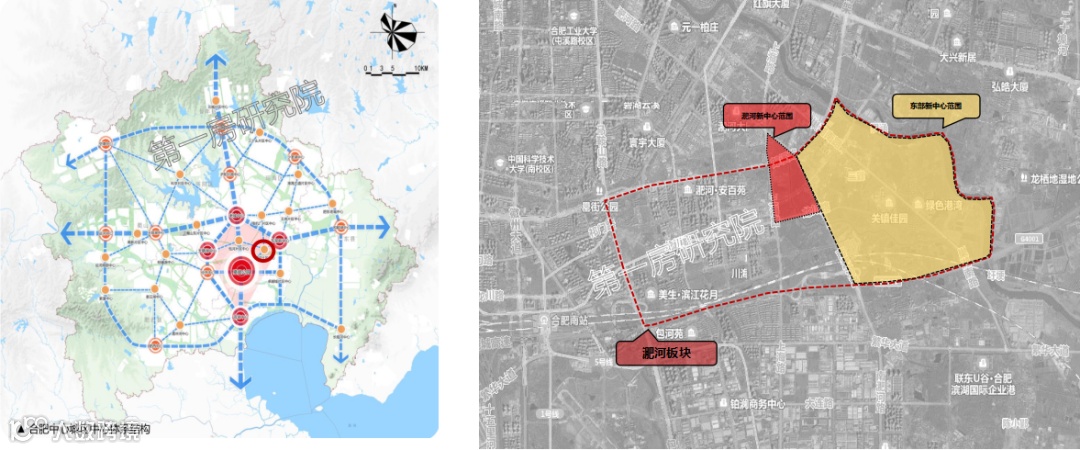 淝河板块,定位为淝河片区中心,表面上看定位比较低,但实则是背靠两大城市主中心“骆岗公园核心”、“东部新中心”两大城市主中心的发展同时也会带动淝河板块的发展。淝河板块范围内有“淝河新中心”范围、“东部新中心”范围,板块未来可期。