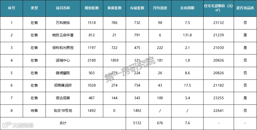 淝河板块目前在售及待售项目8个,其中7个在售盘,1个项目待售。虽然说整个板块竞争压力较大,但是目前8个项目都是限价楼盘,相对于今年出让的地块而言,在价格上有一定的优势。对比板块内二手房市场也有一定的倒挂现象。板块库存约5132套房源,去化周期约7.6个月,随着板块限购取消、首付款降低、房票政策等一系列的利好下,板块内的市场热度已现。