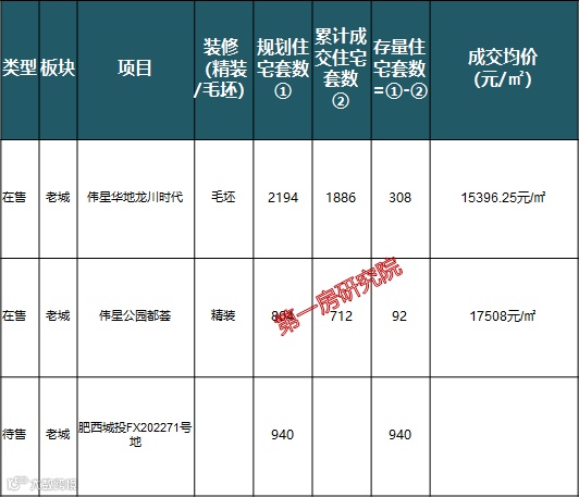 接着我们来看看上派老城片区的两宗地,一宗位于河边,一宗接近中派,而目前片区内仅有两个在售的伟星项目,其中伟星公园都荟已经是尾盘状态;此外还有一个肥西城投项目尚未开盘。