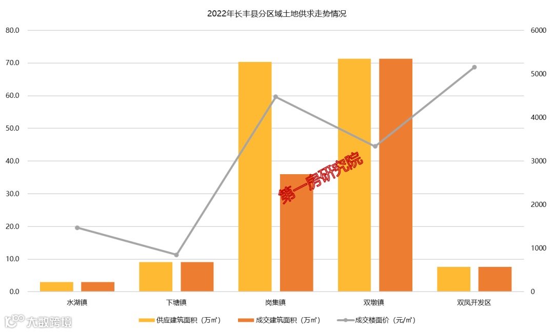2022年下塘镇供应建面9.1万㎡,全部成交,供应成交率达到了百分百。