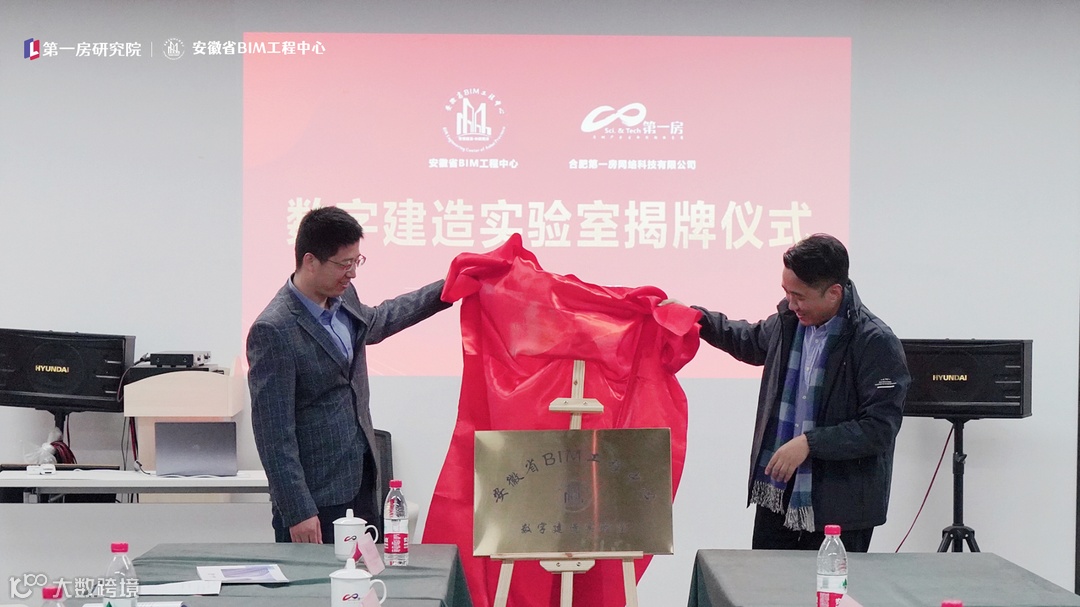 作为合肥第一房网络科技有限公司与安徽省BIM工程中心双方代表,第一房公司创始人兼董事长王仁华和安徽建筑大学土木工程学院执行院长张宁共同为“数字建造实验室”揭牌。