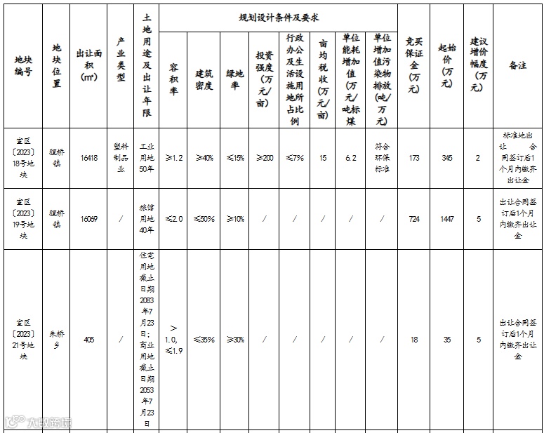 本次公开出让的陆宗地块均设有底价,采用增价方式应价,按照价高者得的原则确定竞得人。