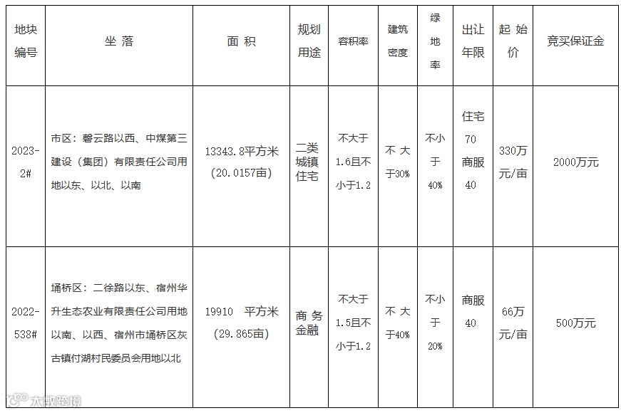 导读:根据工作需要,现对《宿州市国有建设用地使用权出让公告》(宿土拍告字〔2023〕3号)补充公告如下:一、根据竞