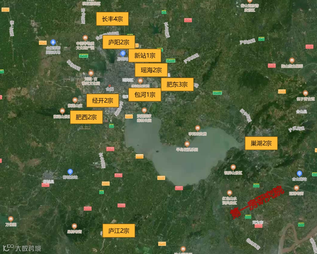 另外巢湖市和庐江县合计新增了4宗新地块,巢湖两宗地位于炯炀镇,靠近巢湖,风景较好;庐江县地块位于城区,生活氛围浓厚,但均由于远离合肥主城区,其成交可能性还有待商榷。