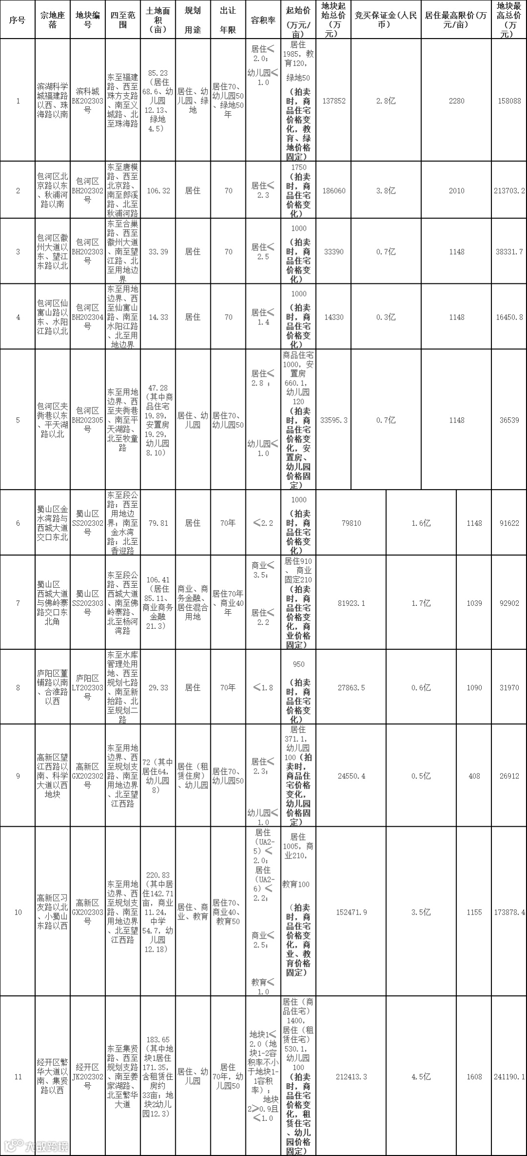 滨科城BK202303号、包河区BH202302号、包河区BH202303号、包河区BH202304号、包河区BH202305号、蜀山区SS202302号、蜀山区SS202303号、庐阳区LY202303号地块竞买人须为企业法人。该企业法人须具有中华人民共和国境内房地产二级以上(含二级)开发资质且注册资本金不低于1亿元人民币。