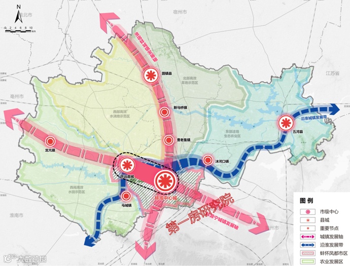 一区:蚌怀大都市区,统筹埠城区与怀远县城的发展,形成服务完备、联系紧密的同城地区打造区域高能级的服务中心。