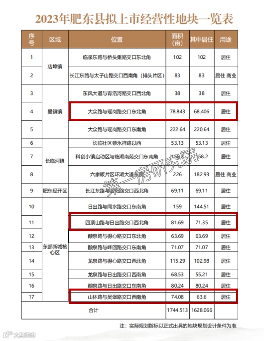 2023年3月18日,以“千亿肥东·文明新城”为主题的肥东县2023年土地推介会在肥东召开。会上推介了2023年肥东拟上市17宗地,约1745亩。截止至目前,地块4#、地块11#、地块17#已成功出让,剩余14宗从位置可以看出基本都属于和睦湖板块,不难看出,2023年将是肥东和睦湖板块大力发展的一年。
