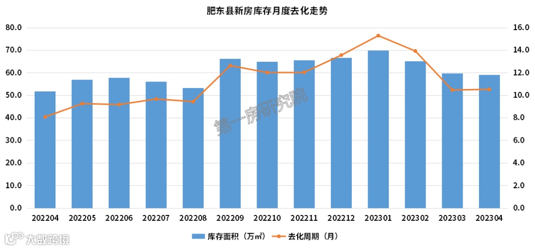 2022年4月-2023年1月存量及去化周期逐月走高。2023年2月及2月以后,市场迎来上行期,存量及去化周期下降明显。截止至4月底。存量去化周期下降至10.5个月。