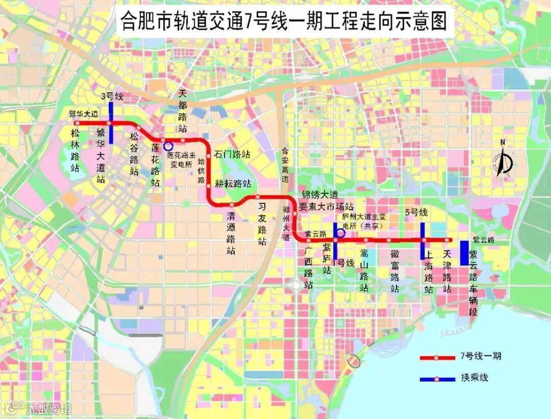 合肥轨道交通7号线一期工程走向示意图
