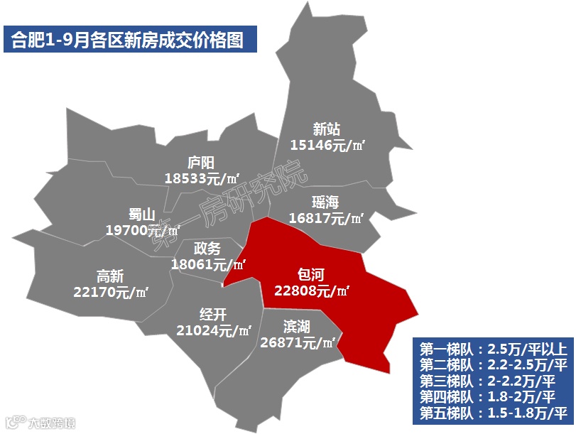 包河区1-9月新房成交均价2.3万/平,属于合肥9区第2梯队,房价目前站位属于较高水平。