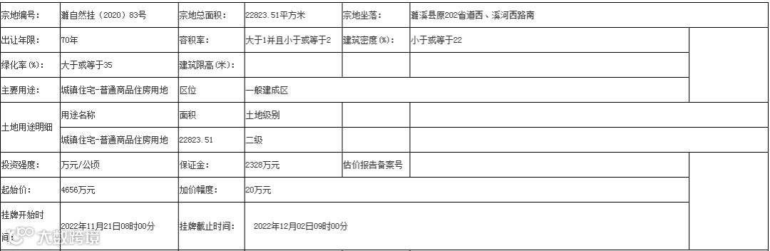 濉自然挂(2020)83号 号地块:2022年11月21日08时00分 至 2022年12月02日09时00分 ;