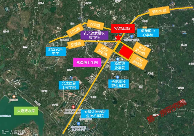 地块紧邻徽商职业学院和紫蓬镇政府,周边有紫蓬镇中心学校、农贸市场、卫生院等,周边配套完善,满足基本生活需求。