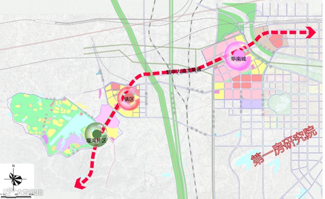 紫蓬镇可以分为华南城片区、商贸片区、老镇区、政务新区、科教文化区以及堰湾片区,而本次出让地块正位于政务新区的核心位置。