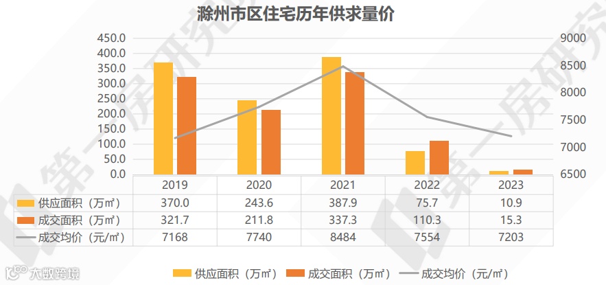 滁州市区近四年新房供应量平均为269.28万方,成交量平均245.27万方,整体供应较为充沛。房价“保7冲8”,较为稳健,具有成长空间。