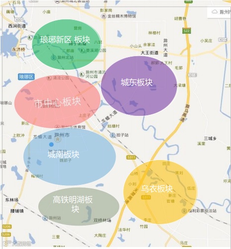 七片:琅琊新城片区、老城片区、城南片区、高铁新城片区、明湖片区、经开区片区、苏滁园片区等七大城市功能板块。