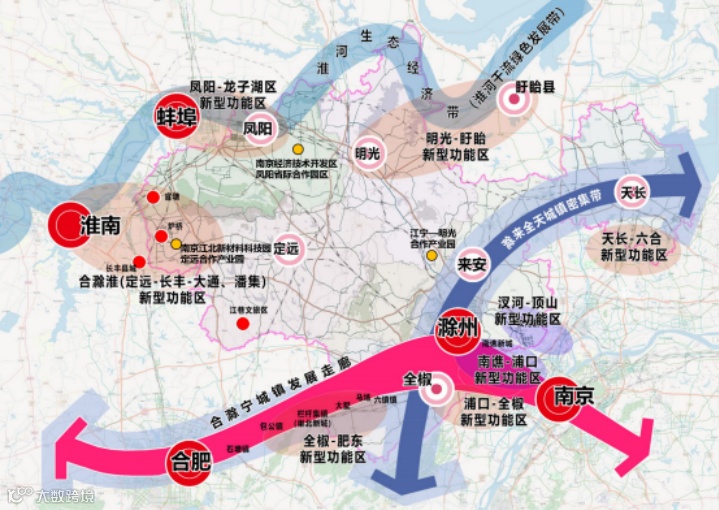 八区:浦口- 南新型功能区、顶山- 汉河新型功能区、六合- 天长新型功能区、浦口-全椒新型功能区、明光 - 胎新型功能区、全椒 肥东新型功能区、凤阳- 龙子湖区新型功能区、合-- 准(定远-长-大通潘集)新型功能区