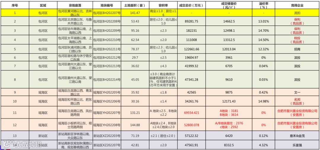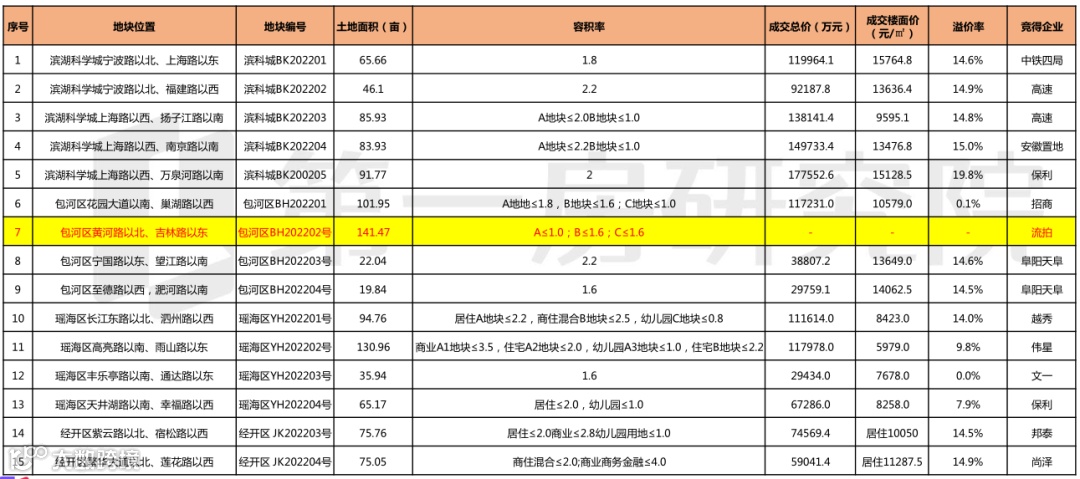 28宗,除去安置房、租赁住房以及特殊情况地块,涉宅地块供应18宗,最终参拍12宗,成交11宗,流拍7宗。(其中6宗无人报名,1宗未达底价)。供应成交率61%,对比二批次,供应成交率下滑18%。民营企业资金实力有限,随着民营企业的逐步“退场”,土地市场逐步转冷,土地市场呈现各区内部两极分化,同区地块参与度高低不均。三轮次集中供地参拍企业是逐轮减少,土地市场热度逐轮下降。