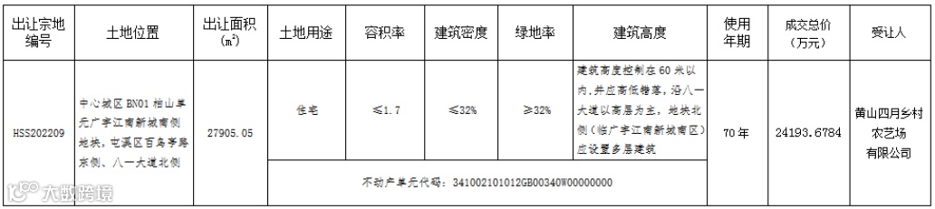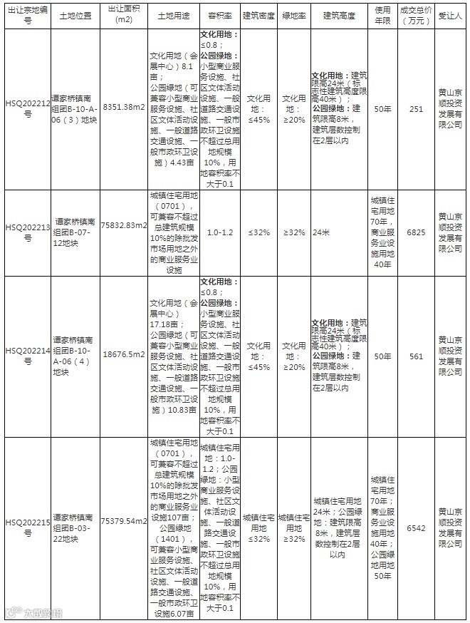 黄山国有建设用地使用权挂牌成交结果公示