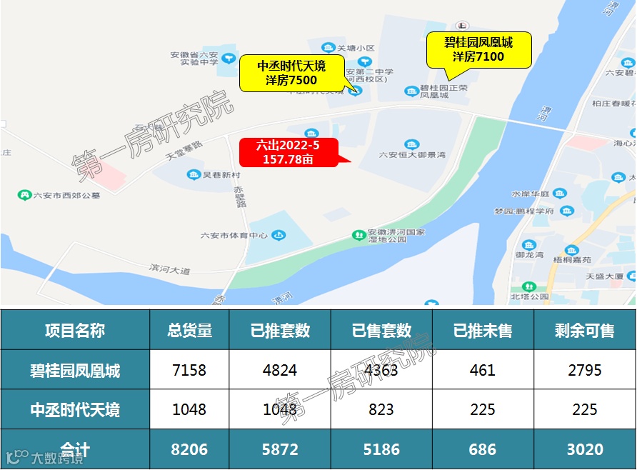紧邻淠河,景观环境优势明显,目前在售楼盘较少,目前仅恒大、碧桂园、中丞在售。