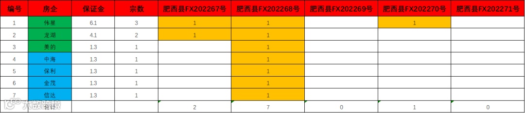 肥西县FX202268号(保证金1.3亿元,毛坯限价21,045元/㎡):共7家报名,中海、龙湖、保利、金茂、美的、信达、伟星;