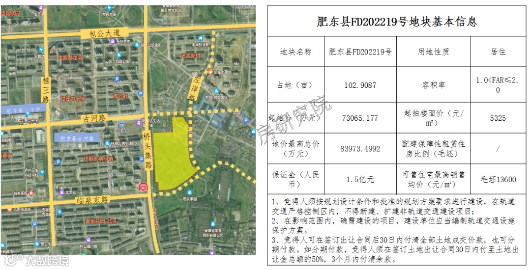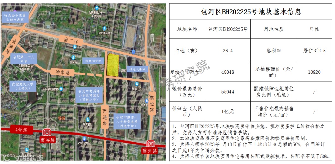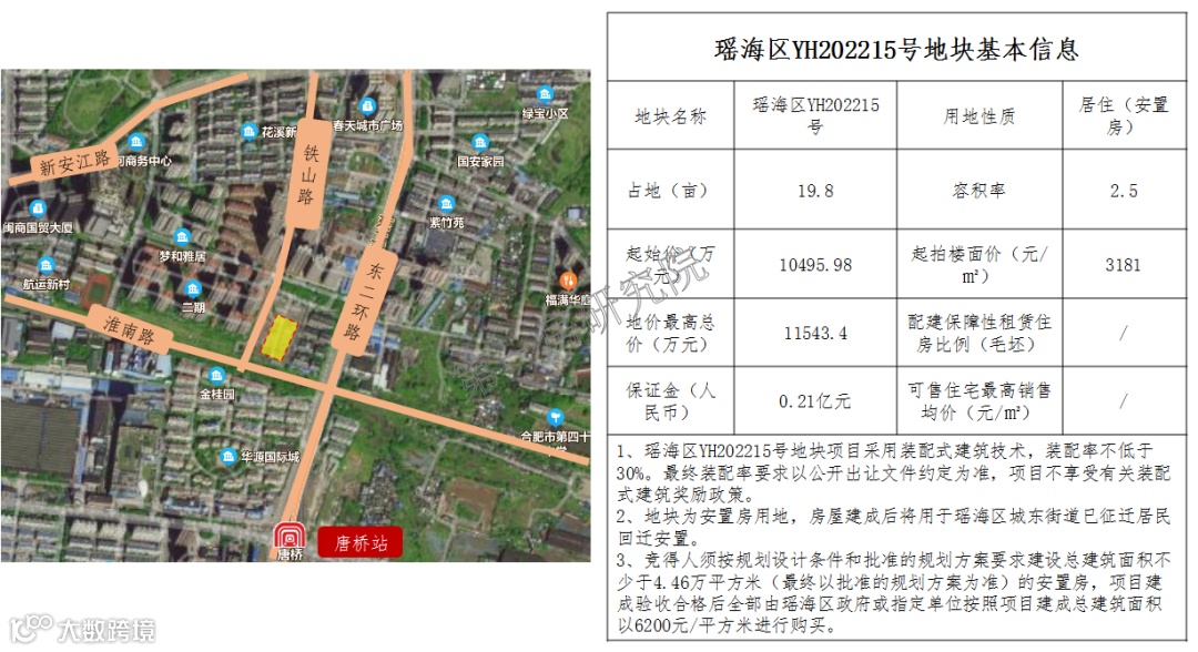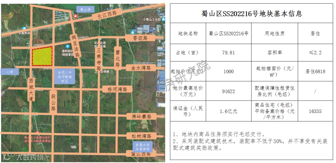 不过地块单价并未做出让步,还是2239万元/亩,并要求建设22075㎡安置房和883㎡商业用房,安置房由蜀山区回购用于安置,不过有一点优势,那就是不做上限价压制,且作为纯居住地块出让也是在一定程度上让利给房企。