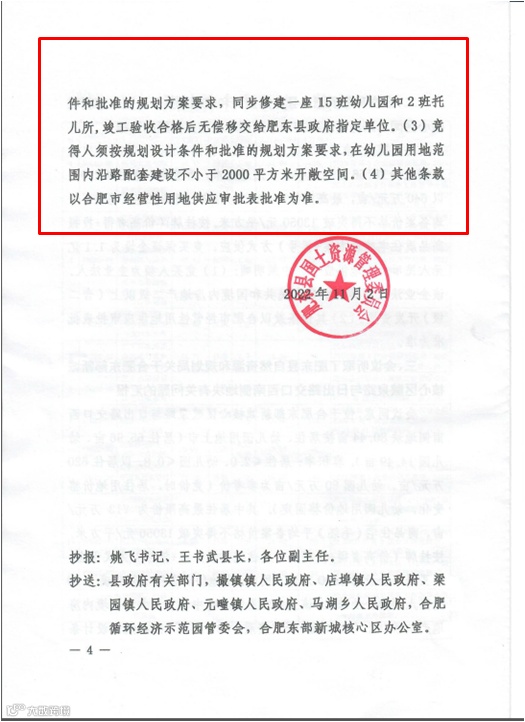 细看出让条件,该宗地块的住宅部分销售限制较多,需根据建设的幼儿园、小学和商业等建筑工程进度来解锁相应的销售比例要求。且该地块可以说是一宗软性定向销售项目,因为根据出让要求,该地块内商品住房每批次开盘建筑面积的80%优先销售给科大硅谷“一镇”范围内企业员工(须符合合肥市购房政策),若在每批次开盘后一个月内未售罄,则剩余商品住房面向市场销售。