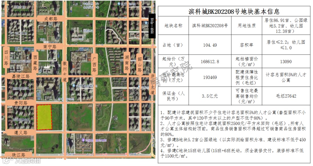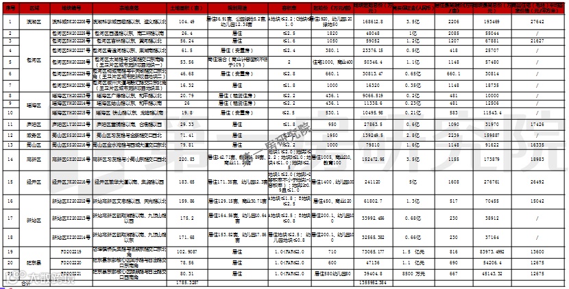 2、市区本批次出让的土地中区位优质的地块较多,但优质地块要么总价高要么条件比较苛刻,对房企的综合实力有一定的考验。