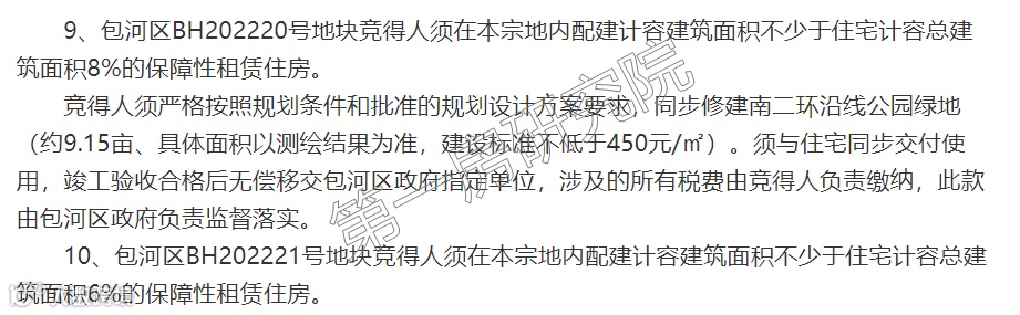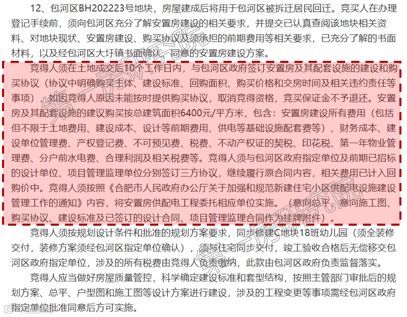 此次东南向出让的三批次地里,片区共有两宗回迁安置房用地,且在出让条件里注明了对安置房屋的质量要求和回购价格,这在一定程度上保证了安置房屋的质量要求,同时也保留了区域整体的居住人气。