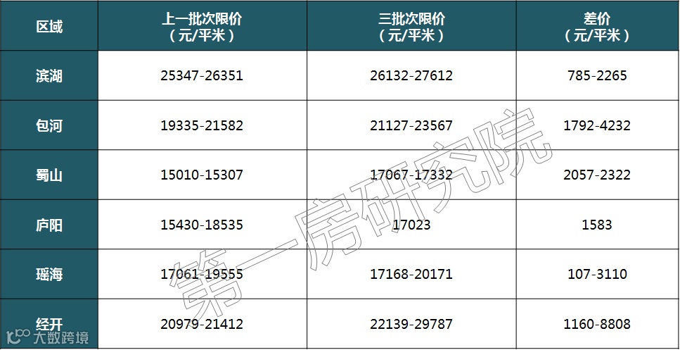 首先我们来看一组数据,三批次出让的地块,对比一批次出让,毛坯限价上调约1600-2300元/㎡左右,个别区域上调明显,比如经开区上调约8800元/㎡左右。如此涨幅,不禁令人“瞠目结舌”。