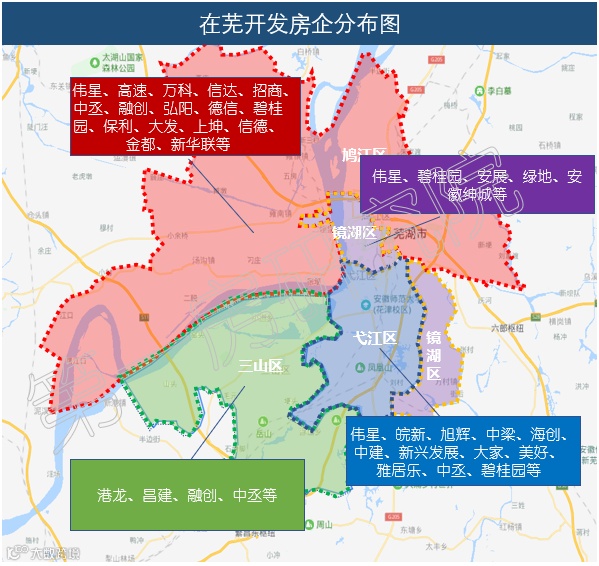 从上图可以看出,在芜湖开发的大部分房企的实力,还是比较强的,其中伟星是长期深耕芜湖的房企,在当地拥有区别于其它房企的品牌号召力,市场占有率也很高,因此伟星是有意愿继续在芜湖大展拳脚的。海创、安展、碧桂园、高速、保利等房企也在芜湖发展了很长时间,预计下半年依然有较大的拿地意愿。招商、杭州大家等新进芜湖的国企资金实力十分雄厚,因此笔者预计,芜湖的优质地块下半年依然能吸引到众多房企参与竞拍。