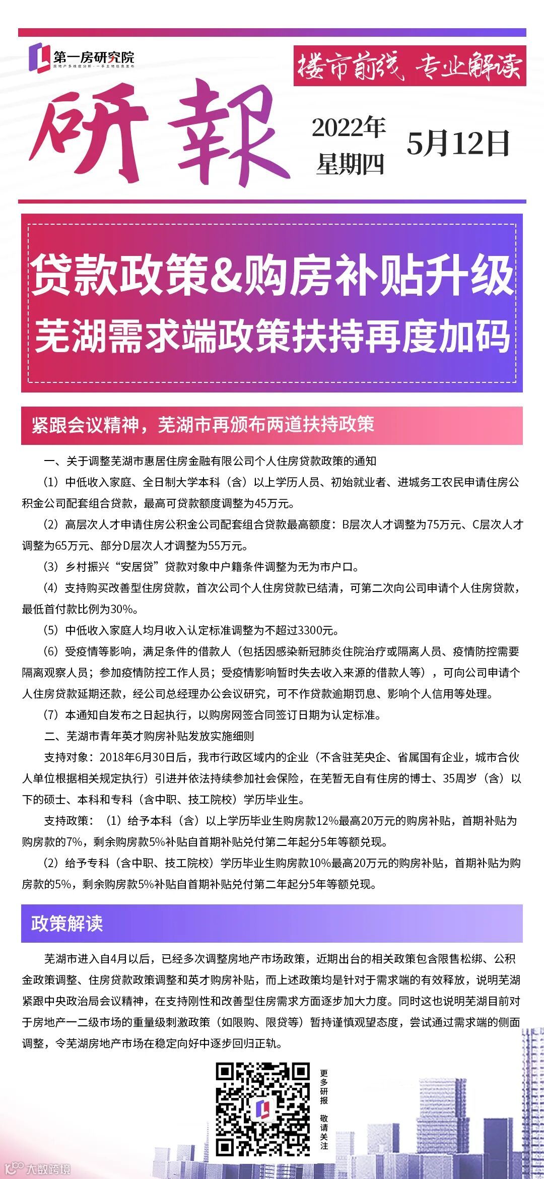 虽然芜湖土地市场热度相对较高,但想走出住宅市场成交的低位,还是需要政策的支持,因此芜湖在4-5月对贷款政策、利率、公积金、人才购房等多方面进行了调整,而芜湖的市场基本面和经济面相比省内其它地级市要更加优越,因此笔者认为,若无重大调整,芜湖的住宅市场将会比其他地级市更快走出低谷,也能够进一步拉动土地市场需求增长。