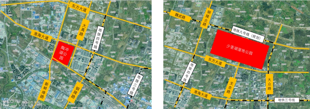 陶冲湖周边路网已然基本成形,距离四号线陶冲湖东站约900米,且距离城区更近,通行便捷;而少荃湖北部尚有道路待修建,而湖南部分基本通达,且三号线、四号线及规划九号线穿行其间。