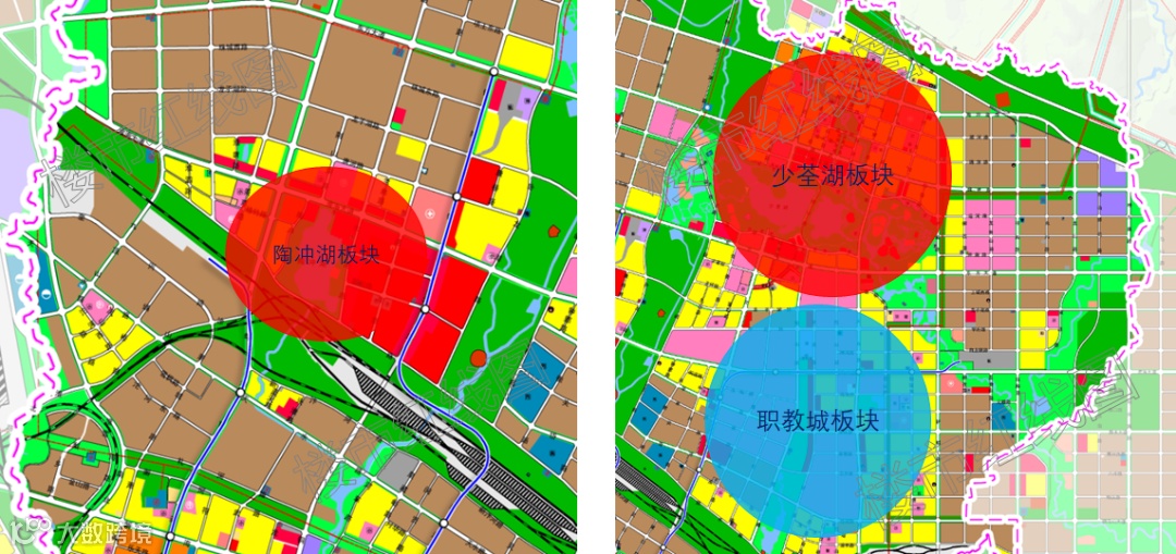 2、陶冲湖板块四周被工业区和铁路线环绕,而且因先行开发造成后期可供土地资源稀缺,与此同时,少荃湖板块则是合肥滨湖科学城五大组团之一,也是新站区最核心的板块,由此可见,少荃湖的发展潜力明显要优于陶冲湖板块。