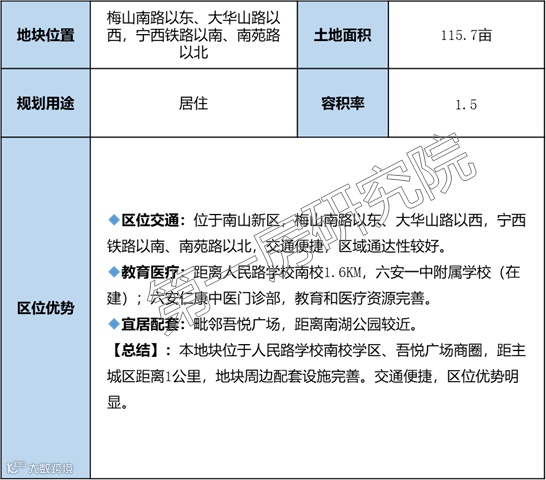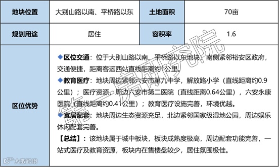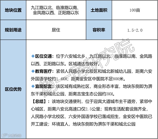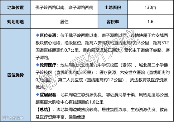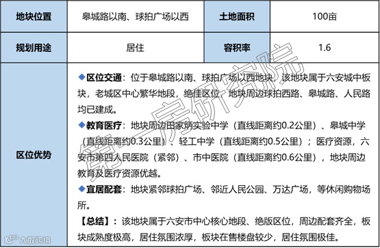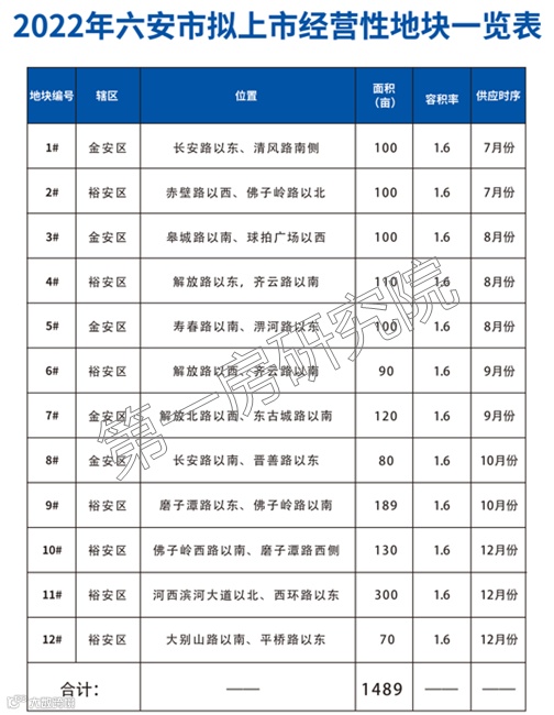 六安市直、金安区、金寨县此次分别有1489亩、557.7亩、835.3亩地块推介,具体情况分别如下: