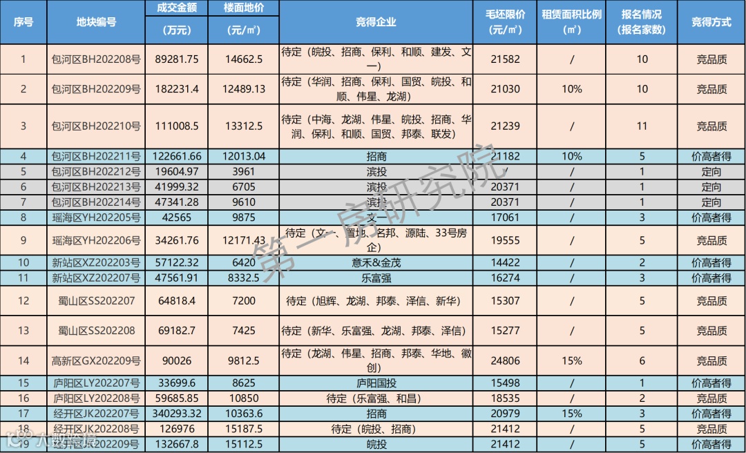 包河区BH202210号(11家):中海、龙湖、伟星、皖投、招商、华润、保利、和顺、国贸、邦泰、联发