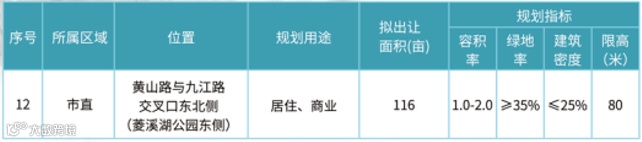 12、地块12#:黄山路与九江路交口东北侧(菱溪湖公园东侧)