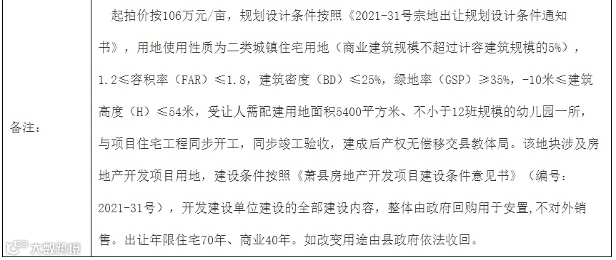 2.本次国有建设用地使用权出让的详细资料和具体要求,见各宗地出让文件。土地准确面积以测绘部门实测为准。