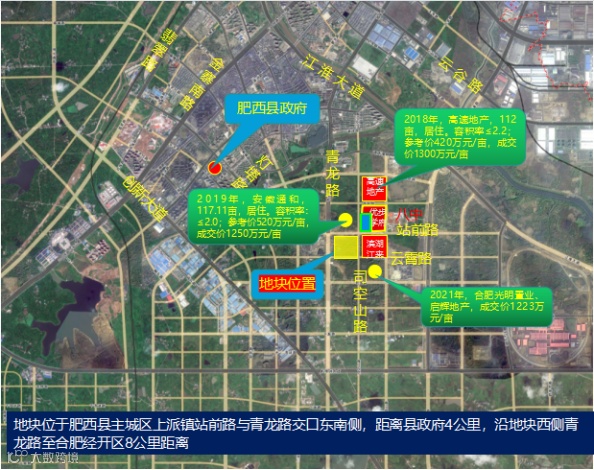 FX202220号、FX202221号两地块相近,两地块均位于肥西经开区,江淮大道和杭埠河大道西侧,FX202220号在磨墩路以西,FX202221号在磨墩路以东,中间地块是今年年初保利拿的地块,新盘名保利紫云。