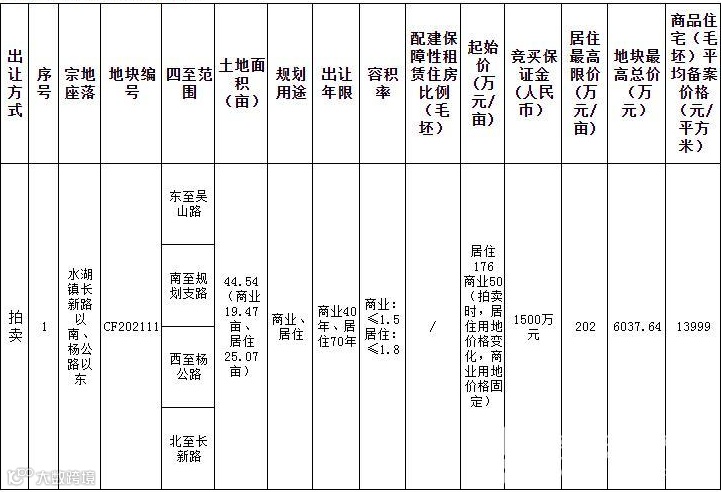 长丰县CF202111号地块拍卖转挂牌 延期至2022年1月7日