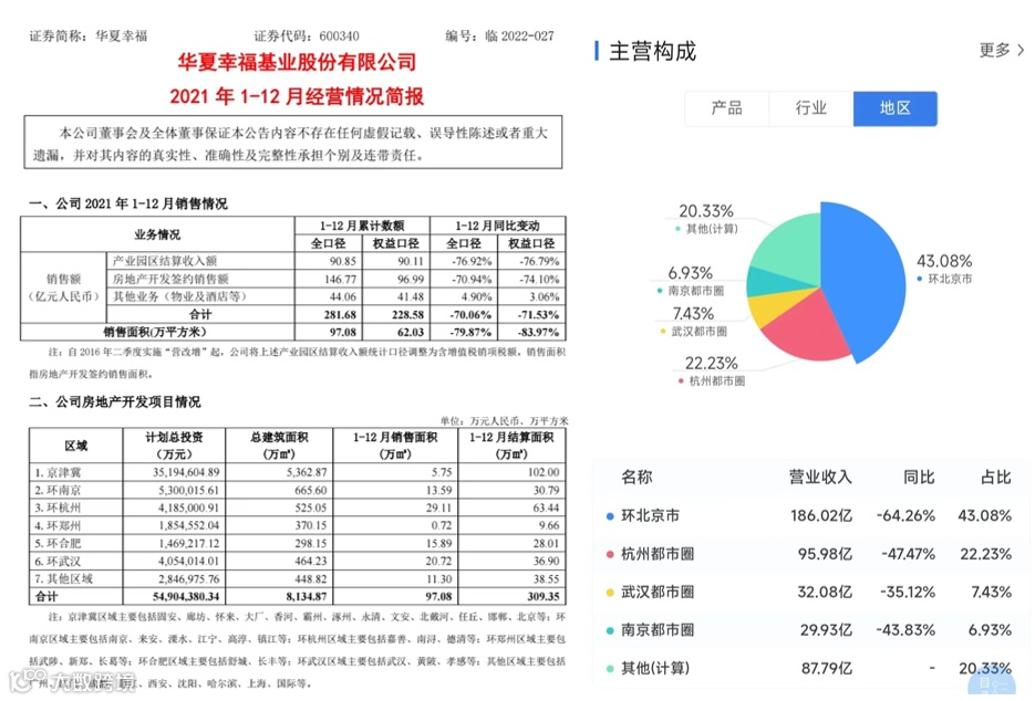 从2021年下半年房地产市场下行之后,开发商的日子们越来越难过,在这近一年的时间里,我们目睹了大量开发商暴雷,尤其是全国型规模民企,由于债务无法按时偿还,陆续进入躺平状态。一般的房企,暴雷的原因主要是高价拿地 - 抵押融资 - 继续拿地,在融资端收紧后循环崩坏,导致资金链断裂。而今天笔者要聊的这家房企,暴雷的原因也比较特立独行,它就是曾经产城融合的先驱者 —— 华夏幸福,逐梦产城,也可能要梦碎产城。