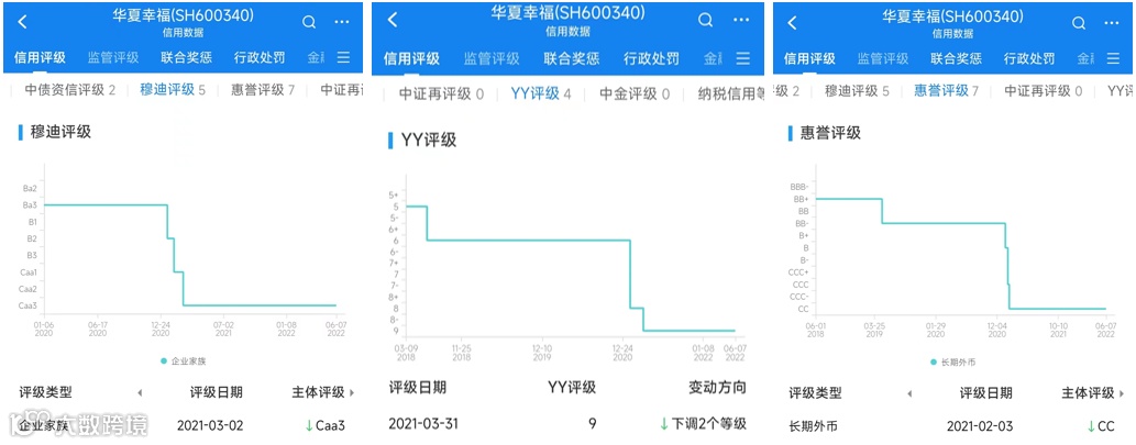 一、2021年3月2日,穆迪投资者服务公司已将华夏幸福基业股份有限公司 (华夏幸福) 的公司家族评级从Caa1下调至Caa3。与此同时,穆迪已将CFLD (Cayman)Investment Ltd.发行、华夏幸福担保的债券的高级无抵押债务评级从Caa2下调至Ca,评级展望仍为负面。数月后,穆迪取消了华夏幸福的评级。