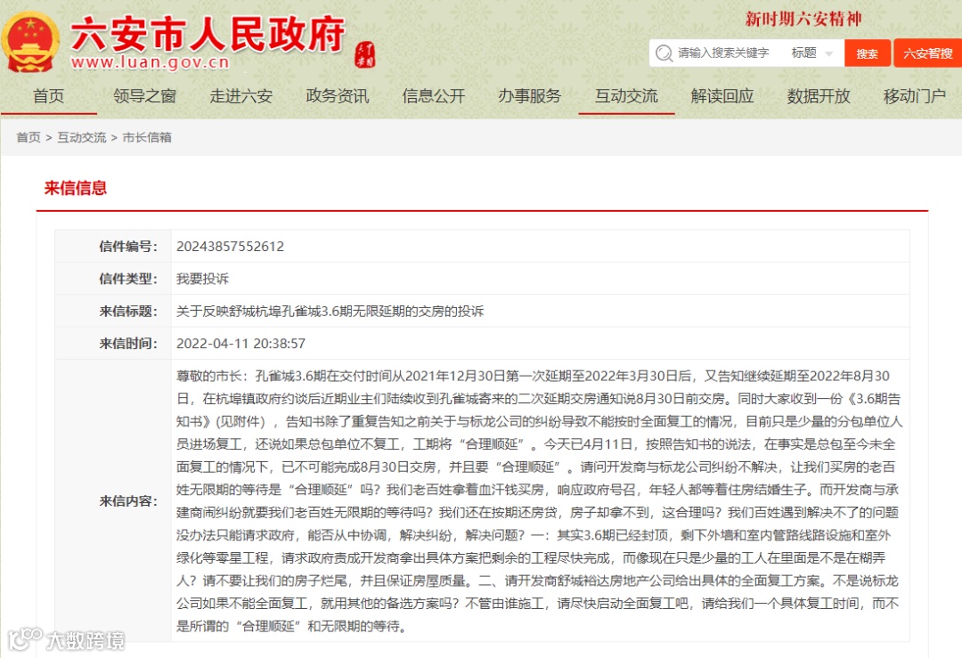 产业园区投入产出比低下,那么必然需要缩减他项成本,以维持运营;又适逢市场各家房企进行高周转攀比,在快建快销的背景下,华夏幸福旗下的住宅品牌孔雀城,相关维权投诉也是不胜枚举:光是安徽舒城、合肥北城、肥东项目,就存在违规收费、拖欠定金、延期交房等各类问题,而房屋沉降、墙皮脱落、墙体开裂等严重品质问题在全国各地层出不穷。加上债务逾期后,孔雀城多地项目停工,令产品口碑雪上加霜。当年孔雀城健康、安心的核心产品价值,不知还能剩下几分。