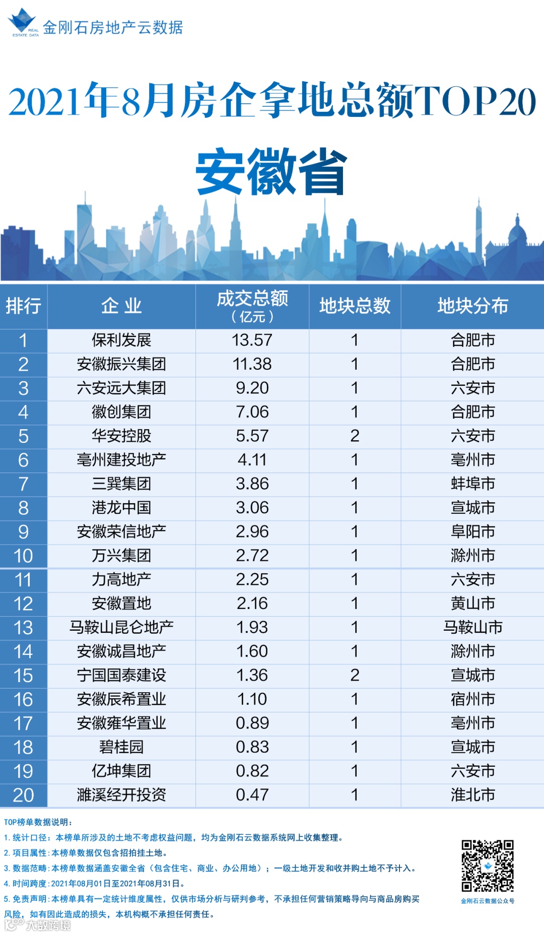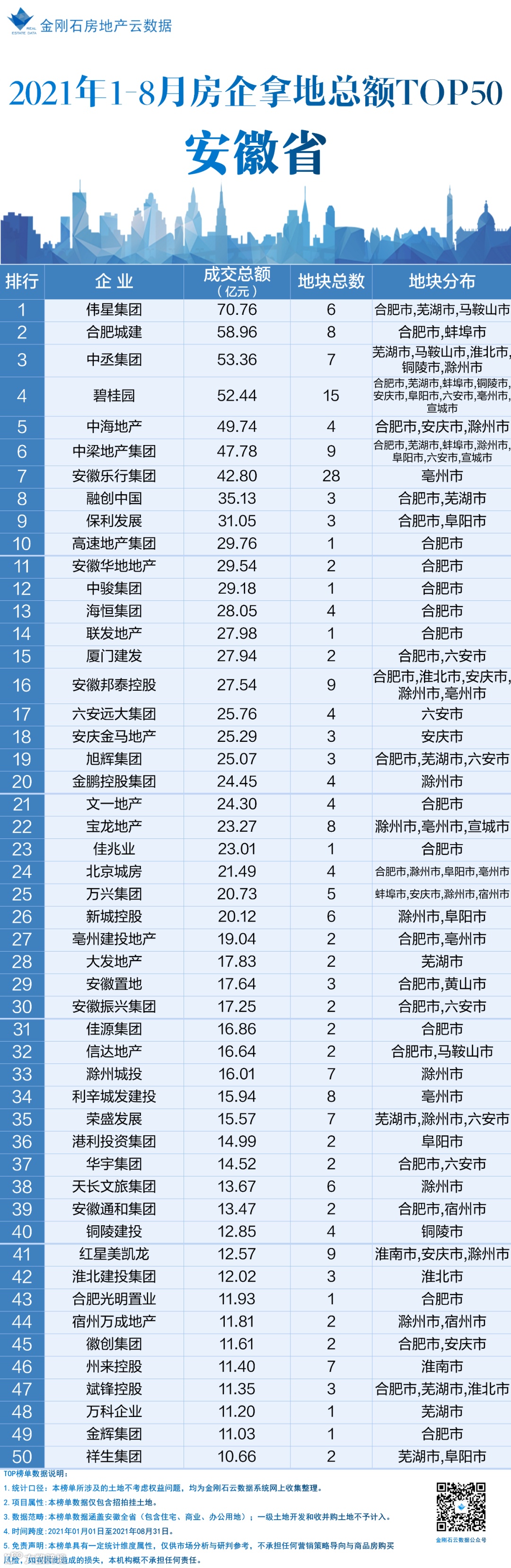 8月安徽省房企拿地金额排行榜