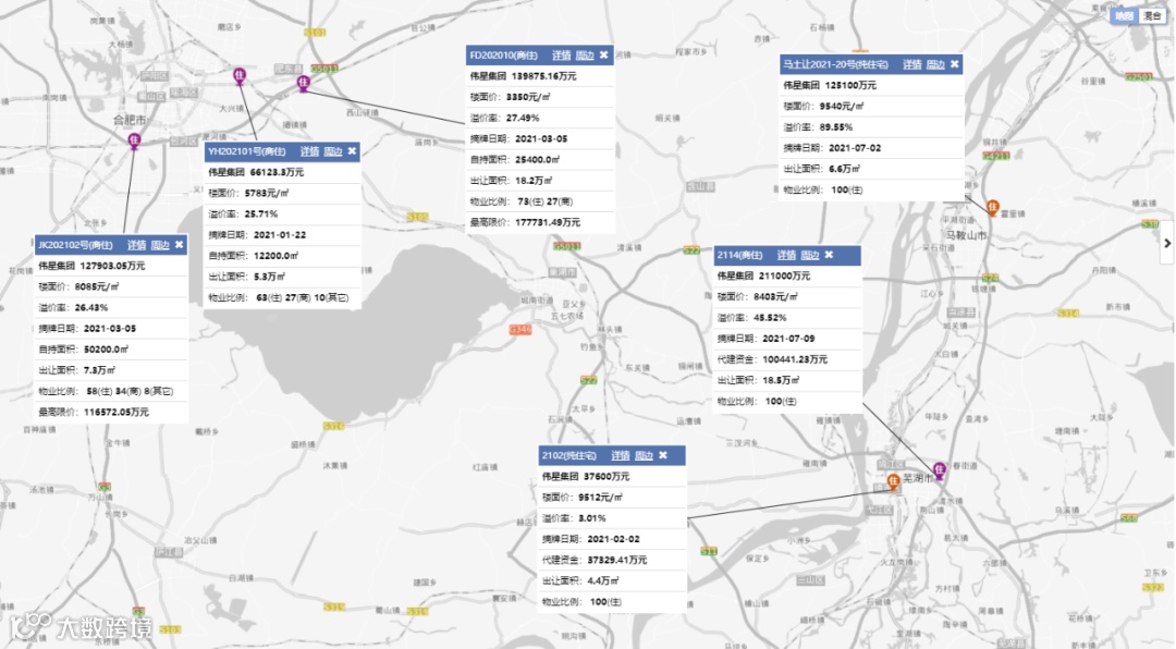 据金刚石云数据土地系统,2021年1-8月,伟星集团以70.76亿元夺得安徽省房企拿地金额冠军,2至10位分别为:合肥城建、中丞集团、碧桂园、中海、中梁地产、安徽乐行、融创中国、保利发展、高速地产集团。