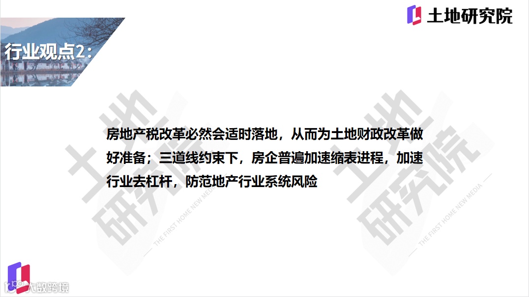 2、房地产税改革必然会适时落地,从而为土地财政改革做好准备;三道线约束下,房企普遍加速缩表进程,加速行业去杠杆,防范地产行业系统风险。