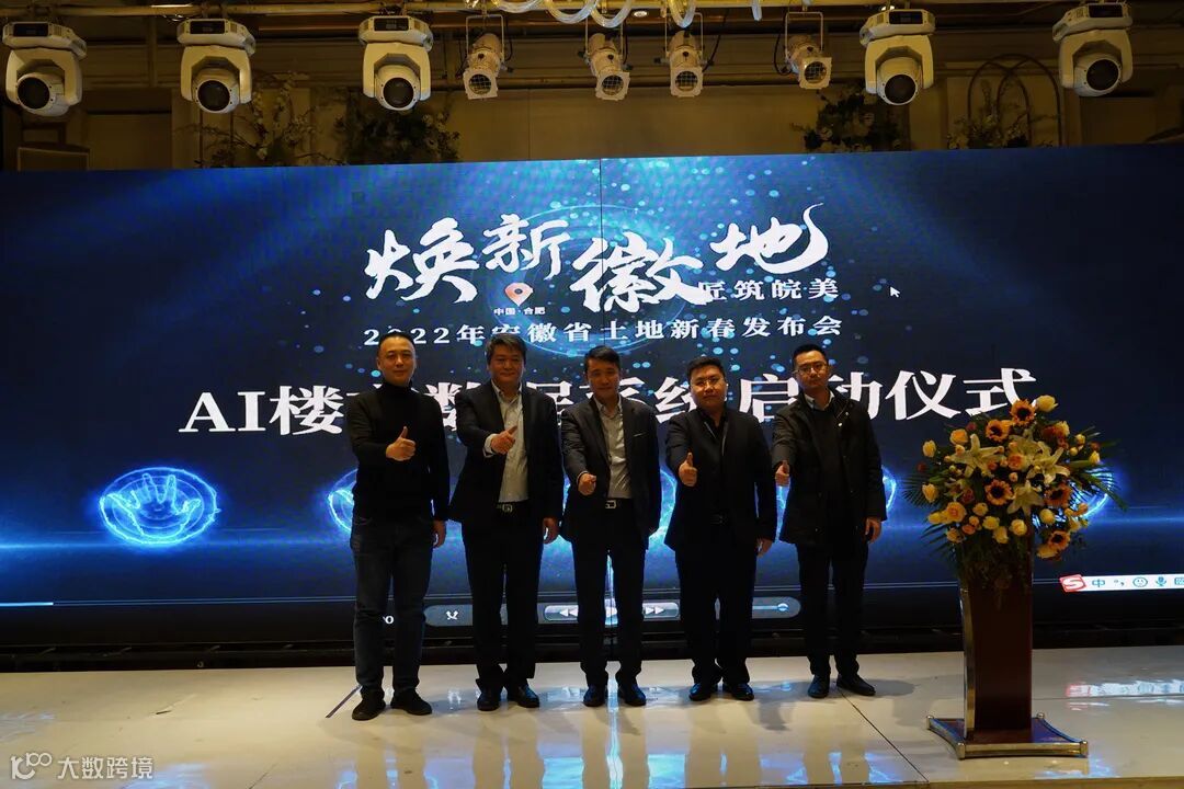 AI楼市数据系统在发布会上,正式启动上线,安徽省广告协会副会长兼房地产分会秘书长、第一房新媒体创始人王仁华,安徽省土地估价师协会会长蒋雪松等领导上台启动。