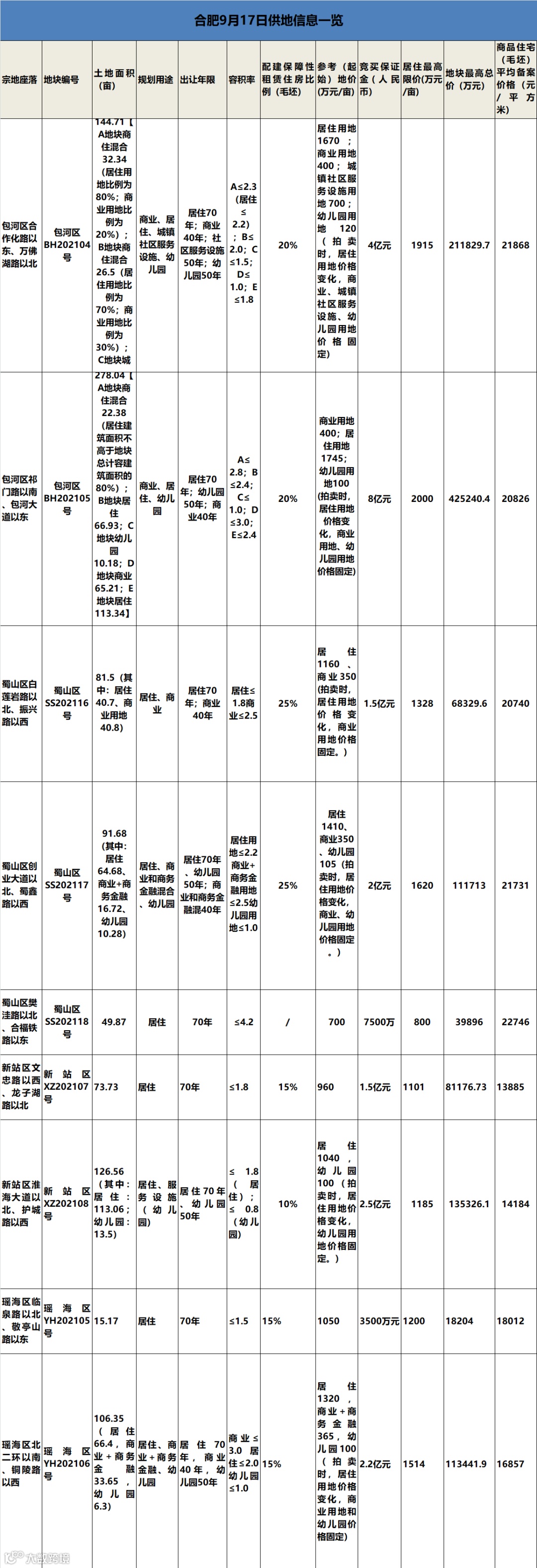 包河区BH202104号位于合作化路以东、万佛湖路以北,属于高铁南站板块,面积144.71亩,配建租赁住房比例为20%,毛坯备案限价21868元/㎡。