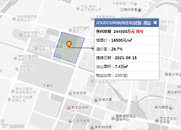 溢价:6.8%,楼面价:19652元/㎡,1.6≤容积率≤2.0