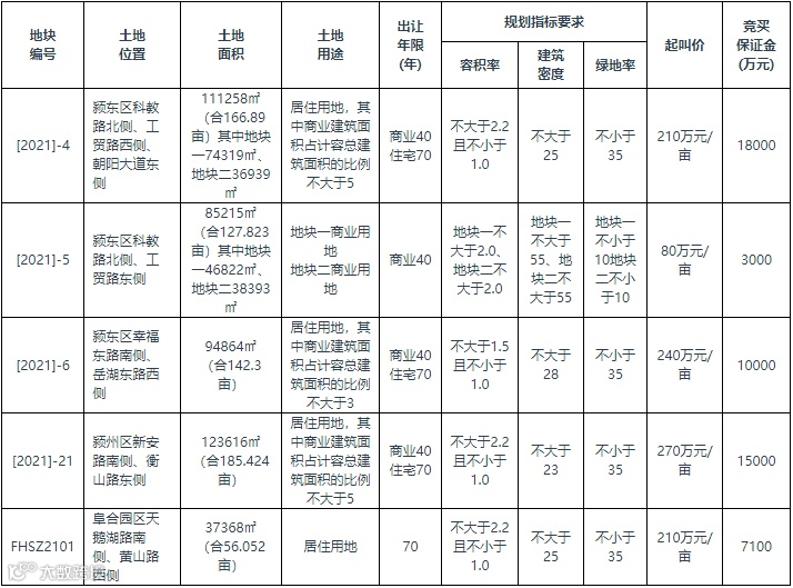 阜阳市9宗土地使用权将出让,包括4宗居住用地、4宗工业用地、1宗商业用地。市区5宗地块使用权申请截止到5月31日,临泉县4宗工业用地为6月7日。