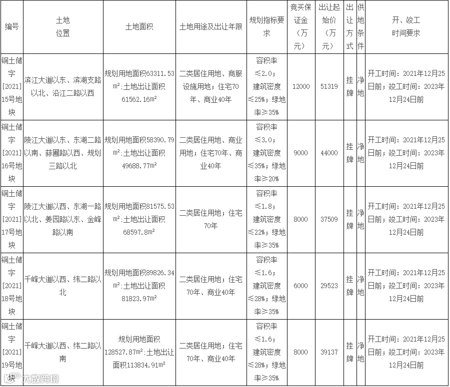 铜陵市将挂牌出让5宗土地使用权,规划用途都保护二类居住用地。申请人可在5月30日到6月7日报名。